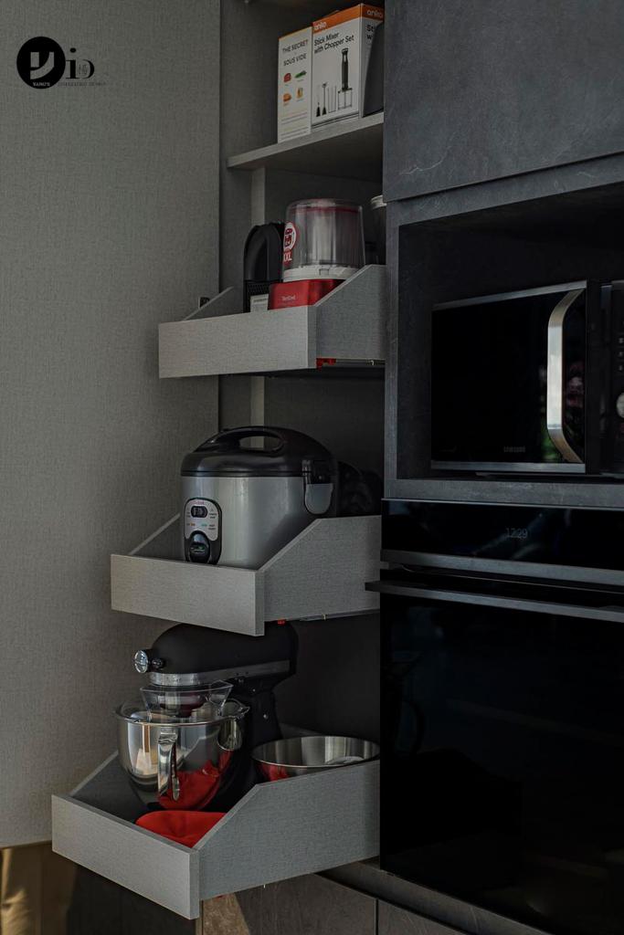 Rein in countertop and kitchen clutter with enough and properly planned storage. Rather than stick to the standard cupboards and drawers, ask us for dedicated compartments that will help organise your kitchen things better.