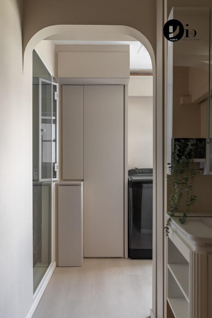 An HDB Renovation at Woodlands Drive by Ken. This archway adds an unconventional architectural detail to the entrance of this laundry room.