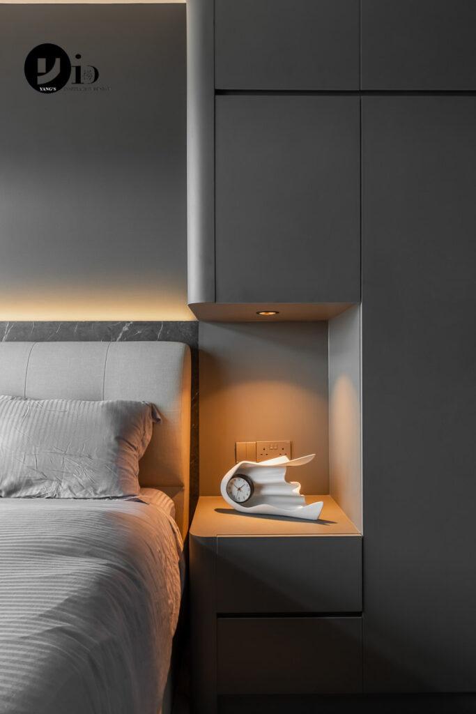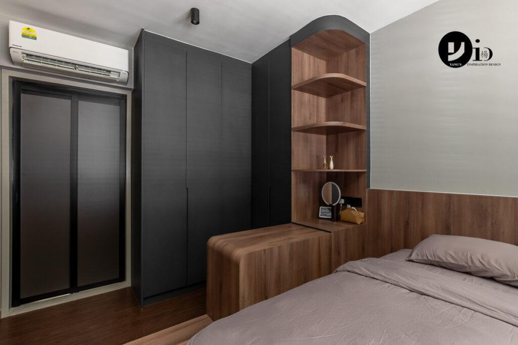 An HDB renovation at Upper Serangoon Road by Jason. With the built-in wardrobe so close to the bed, having soft corners makes the close proximity less of a hazard.